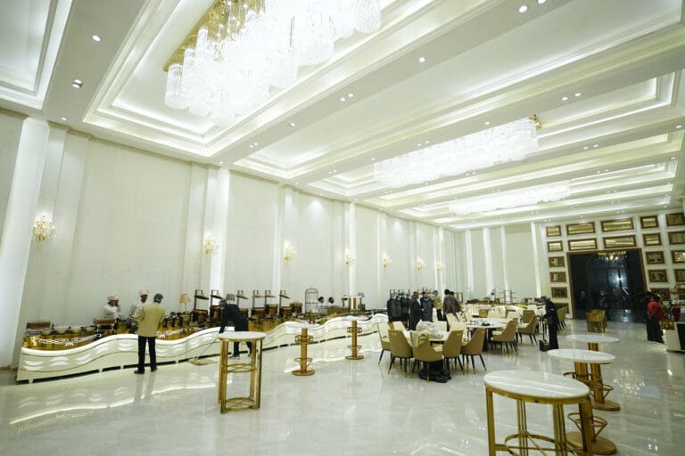 The hall mirrors the elegance of Opal, featuring soft-toned walls, high-end marble flooring, contemporary seating, and sophisticated lighting. Its warm, refined atmosphere creates the perfect backdrop for memorable events, offering both style and comfort.